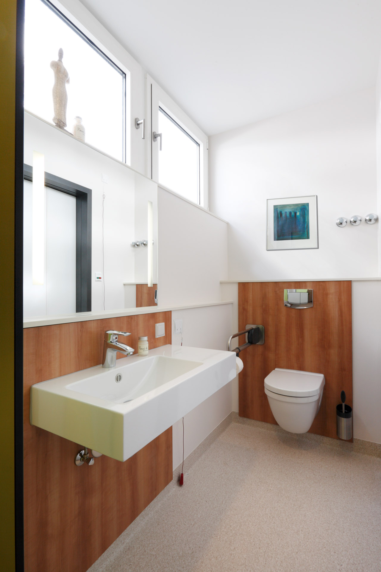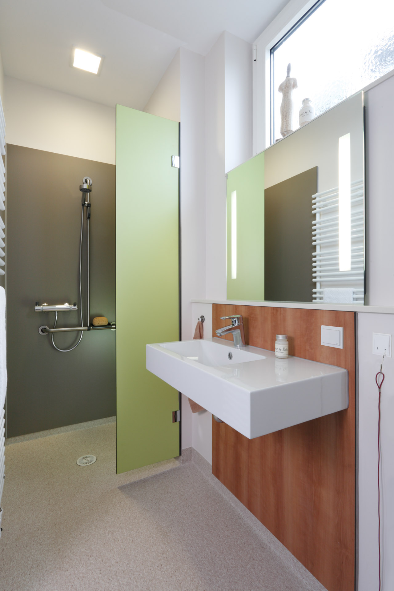 In der Rehabilitationsklinik Königsfeld wurde das IBS-Konzept für den Umbau zu Bewohnerzimmern erfolgreich umgesetzt. Personen mit Mobilitätseinschränkungen halten sich prinzipiell länger im Bad auf. Aus diesem Grund ist es erforderlich, neben der Funktionalität auch das Wohlbefinden in die Planung mit einzubeziehen.