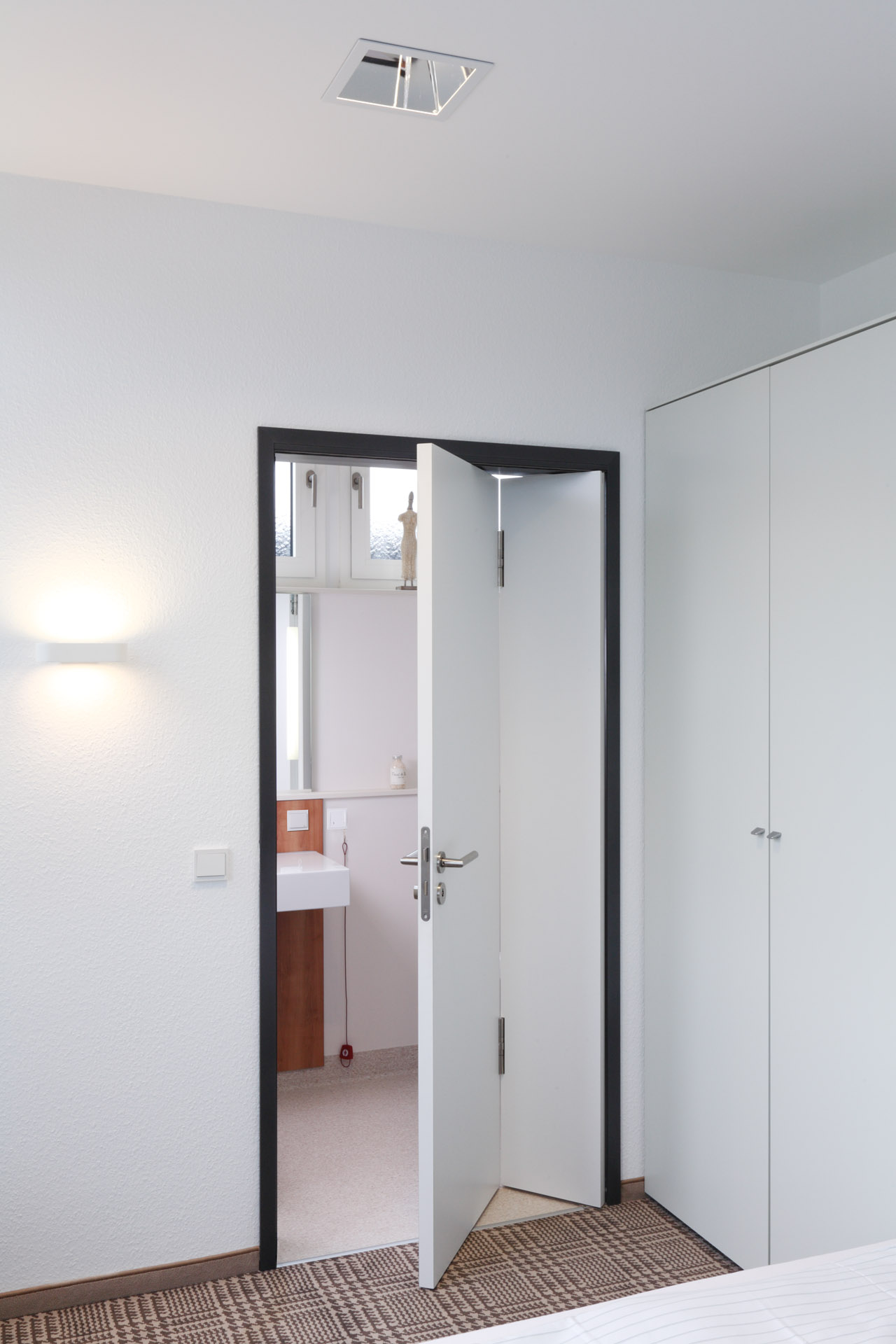 Raumspartüren ermöglichen durch den ergonomisch vorteilhaften Öffnungsverlauf bei frontaler Anfahrt – mit dem Rollstuhl oder Rollator – die gute Erreichbarkeit des Türdrückers. Dadurch werden bei beengten Raumverhältnissen notwendige Manövrierbewegungen deutlich reduziert. In Immobilien mit nicht spezifizierten Nutzergruppen sind Raumspartüren besonders geeignet.