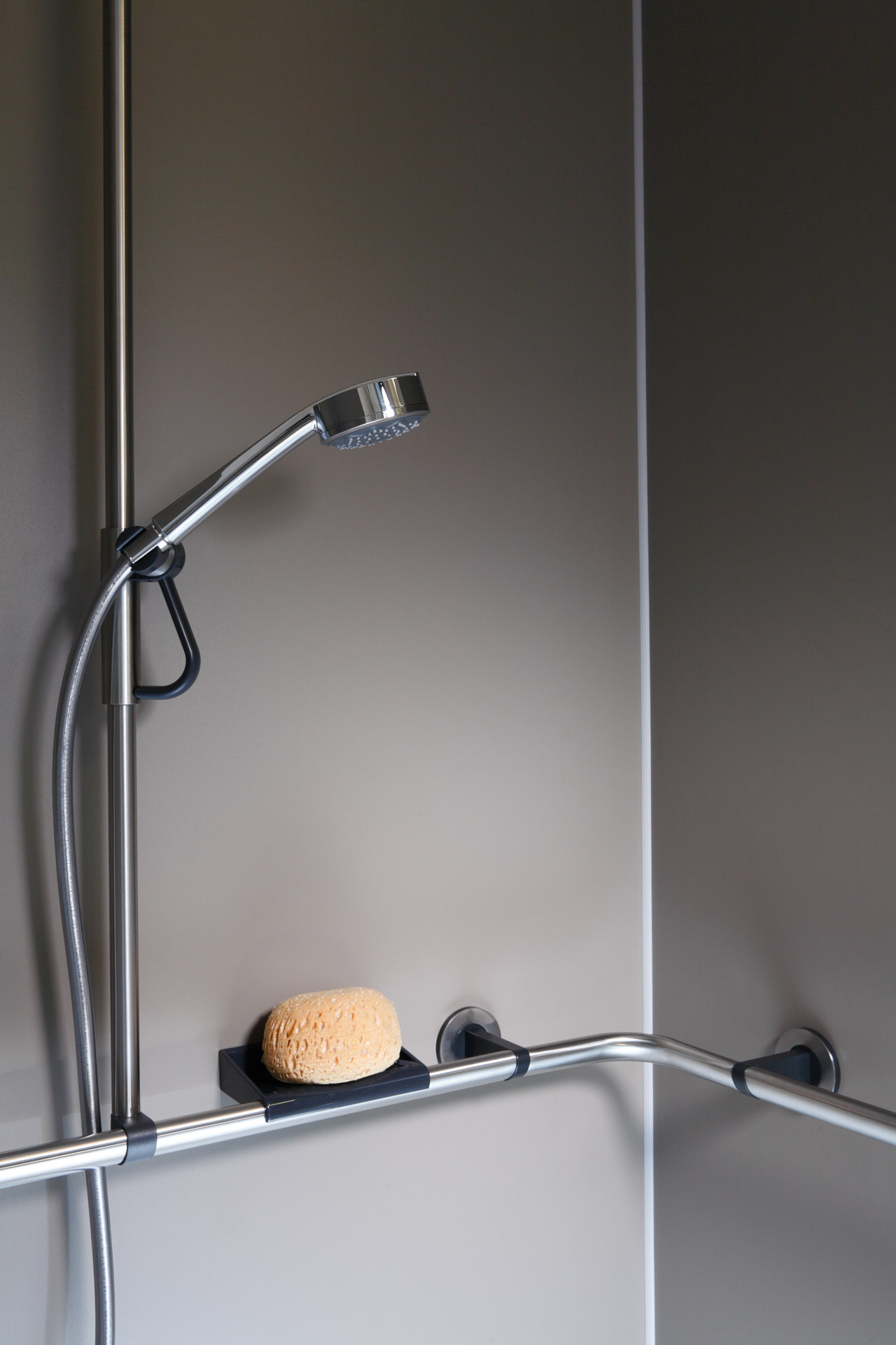 Montageadapter bieten statt einer festen Grundausstattung die Möglichkeit zur Nachrüstung. An der Wand hängende, barrierefreie Lösungen lassen sich so leicht montieren und wieder entfernen. Dementsprechend sind die Hilfsmittel flexibel in der Pflegeeinheit einsetzbar.
